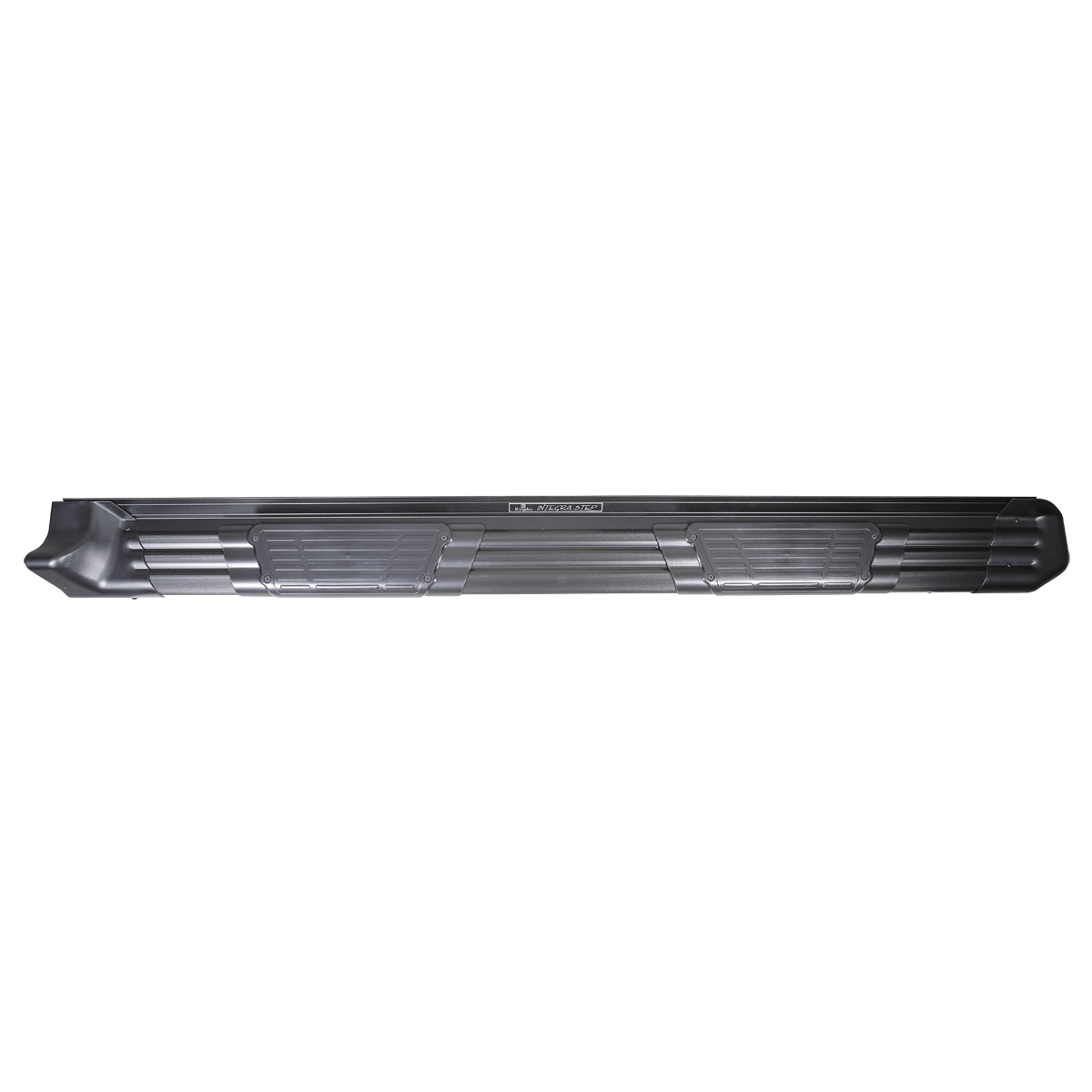 Black Integra Side Steps , from the name you can trust Kingsley Enterprises . Retaining the same much loved quality, and features of the anodised aluminium steps. The black Integra steps give you access to the on-trend look, allowing you to customise your vehicle. Integra Steps provide a functional benefit of easy access to your vehicle, whilst offering a long-lasting durable finish that will increase your vehicle's resale value and overall appearance. STRONG AND DURABLE: AkzoNobel UV Stable powder coat finish, the steps will not dull or fade like many other styles of steps, giving you that lasting look for the life of your vehicle. EXPERT DESIGN: Designed and engineered locally in Australia, ensuring a snug fit and contoured to match each specific vehicle. SAFETY CONSIDERED An exhaustive research and evaluation program is undertaken to ensure our side steps are fully compatible with side airbags (where applicable) and dont interfere with modern vehicle safety systems. TESTED TO PERFORM: A full-width step offers a robust barrier from stones, mud or whatever else the wheels throw up, protecting your vehicle from damage. Check out our Vehicle Finder and find your fit! SPECIFICATION WARRANTY: 5 years MATERIAL: Aluminium with AkzoNobel UV Stable powder coat finish, black non-slip step pads and coated brackets.