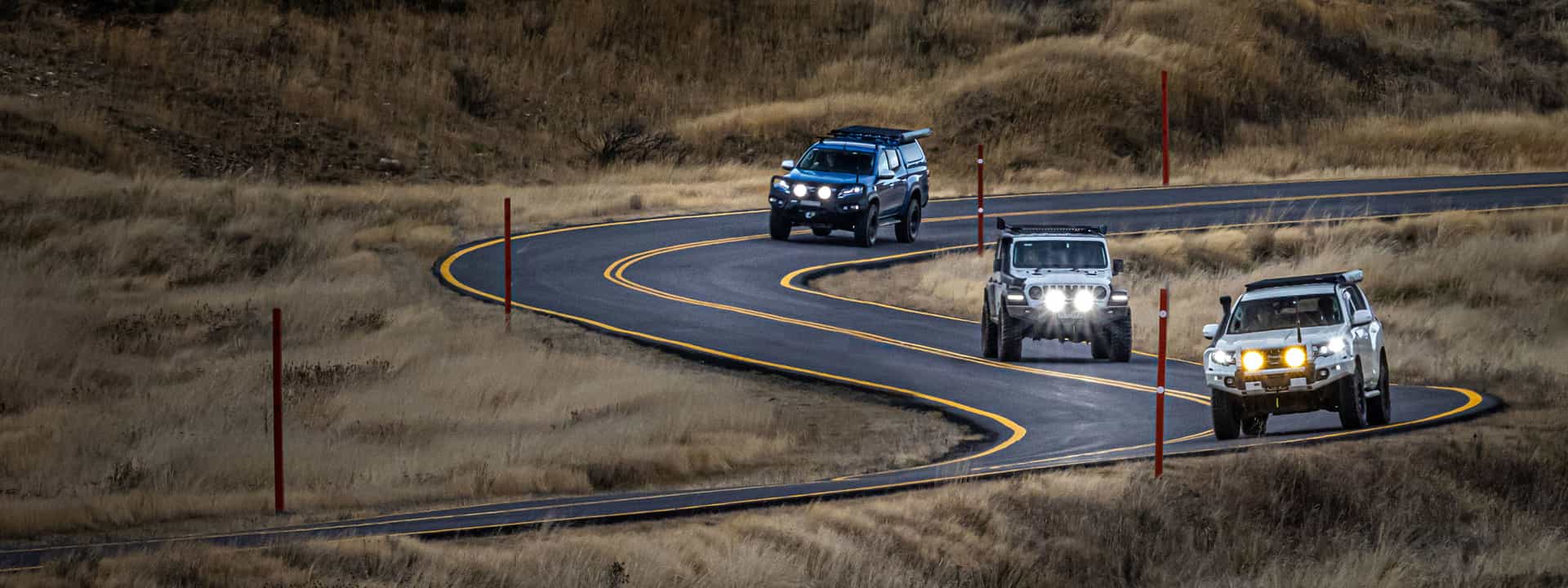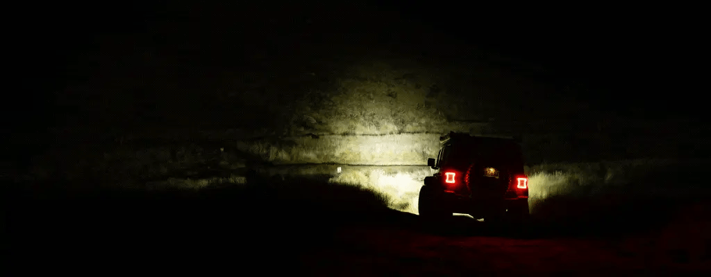 - Clear nights, long outback highways – dial your lights up to max brightness, cool down your colour temperature or go full spot beam pattern for the maximum throw down the road.